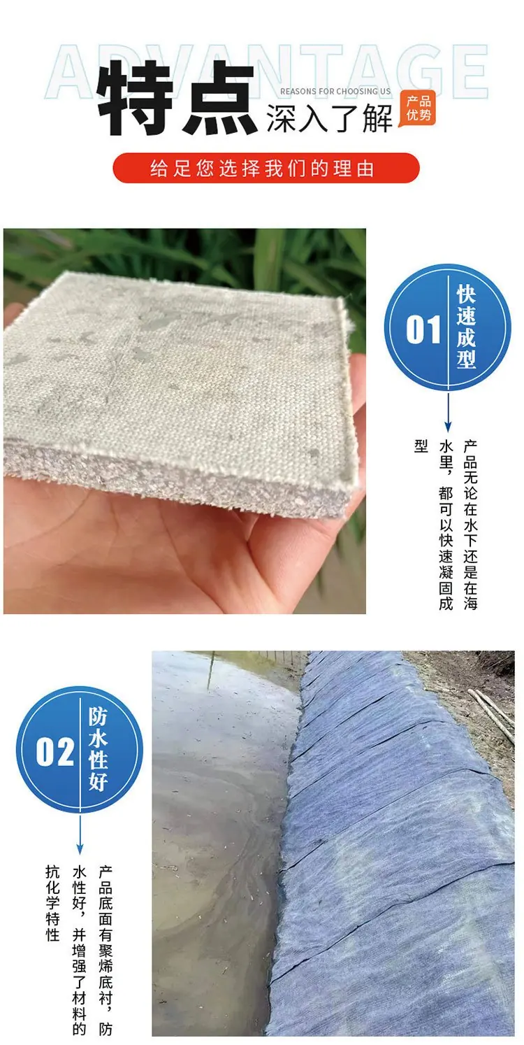 根據(jù)工程需要進(jìn)行定制,尺寸裁剪靈活,能夠適應(yīng)不同地形和尺寸的魚塘河道等工程。其次,水泥毯的施工過(guò)程簡(jiǎn)單快捷,只需將其鋪設(shè)在預(yù)定位置,然后進(jìn)行適當(dāng)?shù)墓潭ê宛B(yǎng)護(hù),即可在短時(shí)間內(nèi)實(shí)現(xiàn)快速成型。這種施工方式不僅大大縮短了工期,還減少了人工成本和材料浪費(fèi)。其抗壓強(qiáng)度和抗彎性能也非常高。在成型過(guò)程中,它能夠承受一定的水壓和沖擊力,保持結(jié)構(gòu)的穩(wěn)定性和安全性。同時(shí),水泥毯的柔韌性也使其能夠適應(yīng)地形變化,減少因地形差異導(dǎo)致的施工難度。